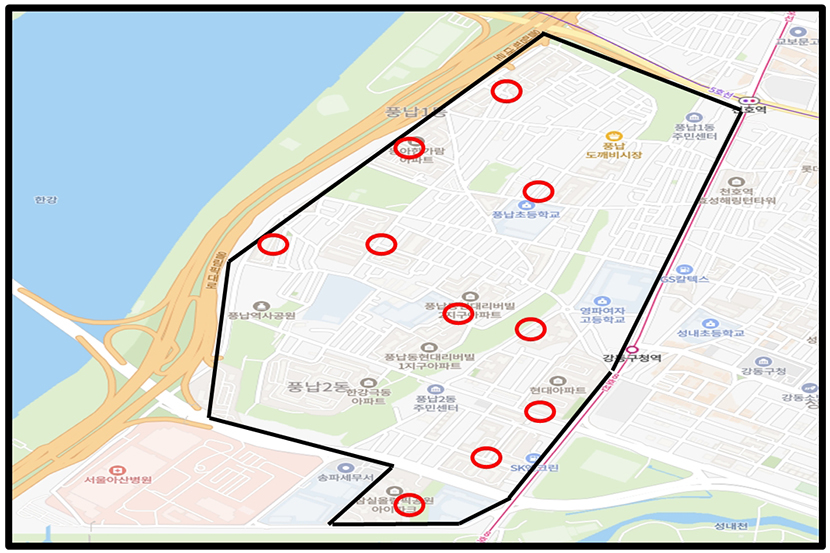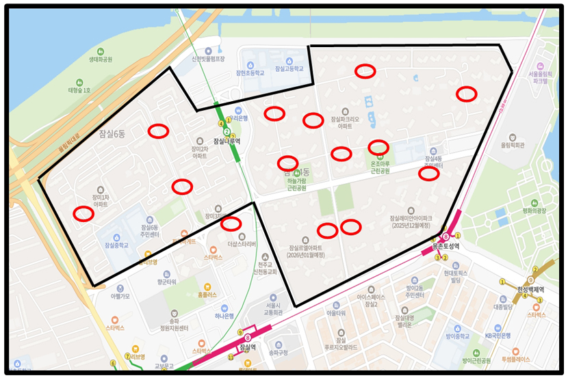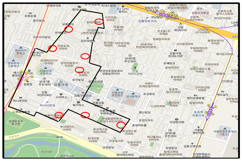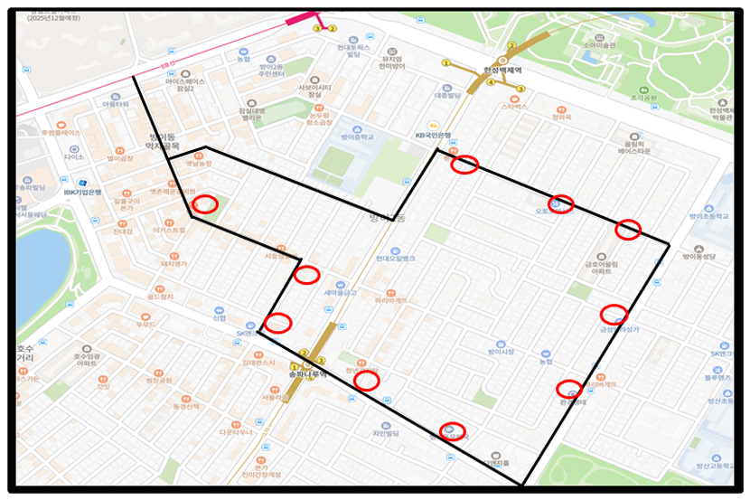 - 주요 승·하차 지점은 빨간색 동그라미를 참고하세요.